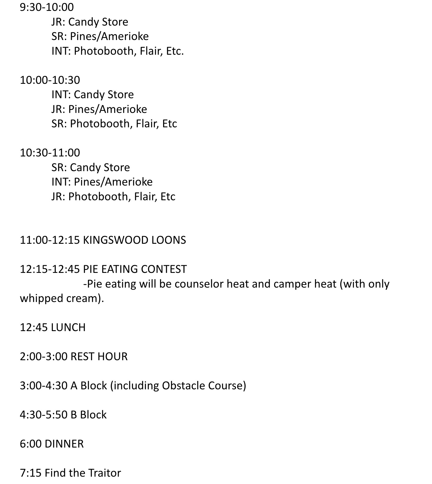 Speaking of treats, today is the Big One, with each camper receiving $10 in “Kingswood Kash” (In Wiff We Trust) for a shopping spree, the first round coming up in half an hour. Both Sara and I will be snapping pix all day long. She wants me to let you know that her efforts will be in the thousands (honestly) and it will be much later before her albums are posted. I will be doing more than one RIGHT NOW, so please check the albums every so often. I’ll aim for 10:30 for the initial onslaught.
